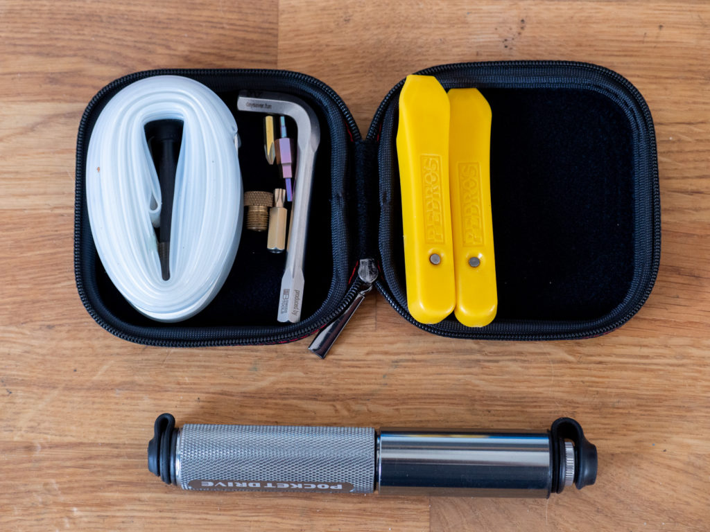 - Reifenheber: Mit den Pedros Microlever hat der US Hersteller sich wieder selbst übertroffen, diese sind super klein und funktional. Gleichzeitig ist darin ein Platz für einen Quicklink für die Kette, damit deckt das Tool noch eine weitere Notfunktion ab. Ein schöner Bonus der praktisch kein Gewicht hat.