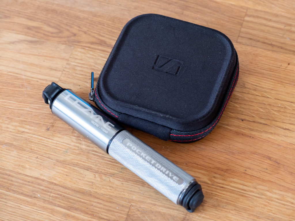 - Minipumpe: Die Lezyne CNC Pocket Drive ist die kleinste Minipumpe die ich kenne. Nur 18cm lang passt diese sogar in eine Werkzeugtasche. Gleichzeitig bin ich von der Funktion überzeugt, auch 43mm Gravelbike-Reifen bekomme ich schnell aufgepumpt.