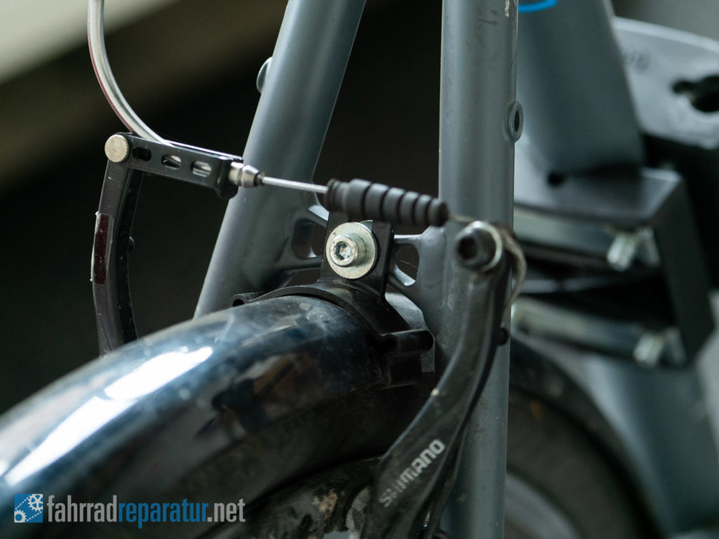 Die dritte Verbindung erfolgt unten am Rahmen, hinter dem Tretlager. Auch hier sollte eine Öse sein, an der man das Schutzblech zusätzlich befestigt. Manche Schutzbleche kommen aber auch mit einem alternativen Clip, falls diese Öse fehlt – so zumindest die SKS Bluemels Schutzbleche. Oder werden mit einfachen Kabelbindern fixiert.