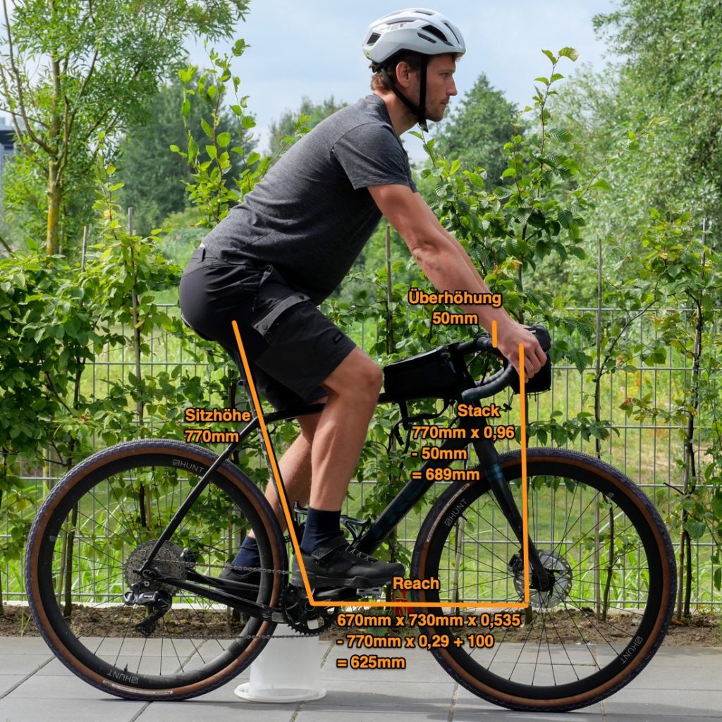 Aus diesen Schritten leitet ihr die finale optimale Stack und Reach ab, inklusive des Aufbaus am Lenker und Vorbau. Abgestimmt nach euren Zielvorgaben, wie sportlich ihr auf dem entsprechenden Rad sitzen möchtet.