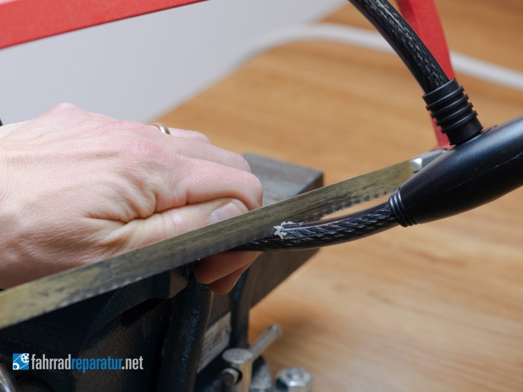 - Jegliche Kunststoffanteile sind für einen Kabelschneider wie Butter – egal wie dick. Ein Kabelschloss mit Kunststoffmantel stellt das allereinfachste Fahrradschloss dar und wird vom Fahrraddieb auch als solches erkannt.