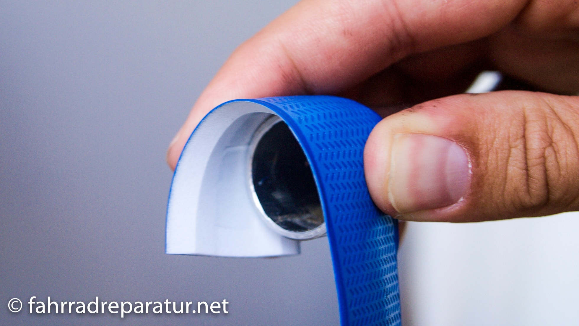 - Damit das Lenkerband nicht verrutscht, klebt ein Textilband der Länge nach auf dem Lenker. Wickelt darüber das Lenkerband. Die Reibung verhindert Verrutschen.