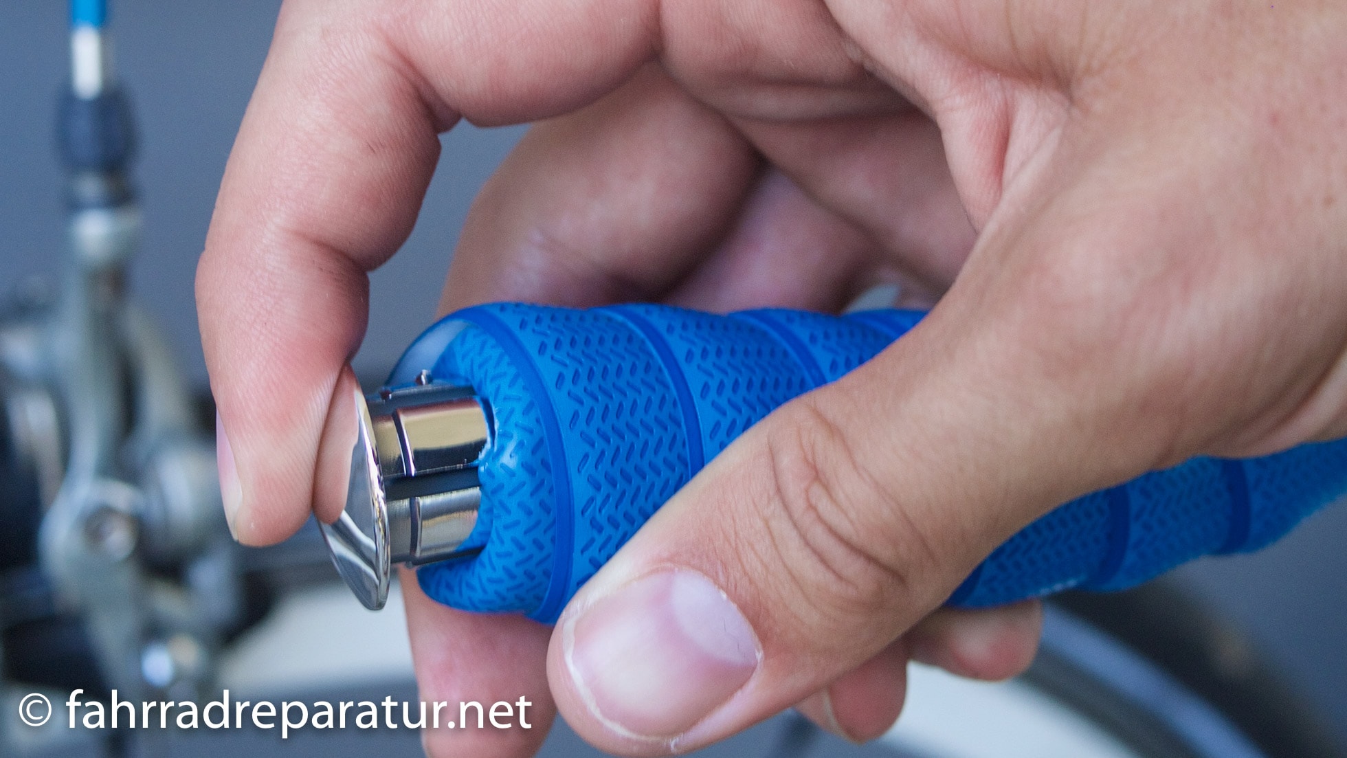 - Wickle das Band beim Bremshebel über Kreuz, damit kein Metall zu sehen ist.
