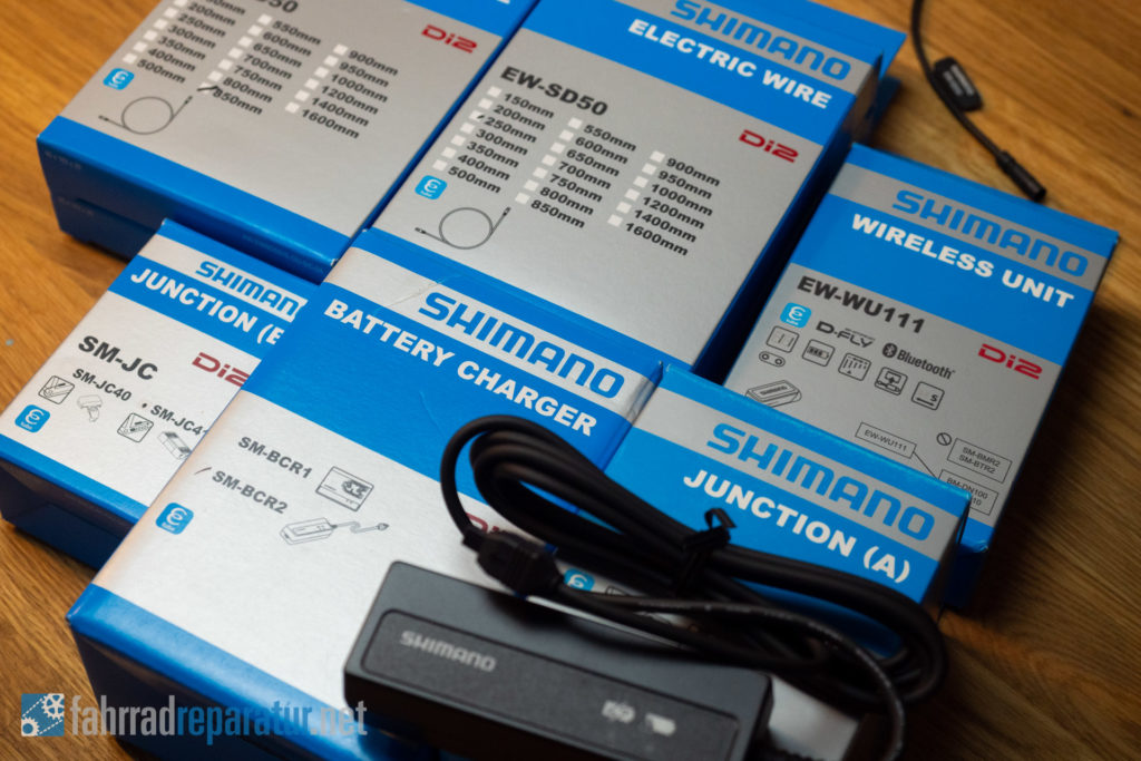 - Ladegerät: Die elektrische Gruppe kann leider nicht direkt via USB-Mini geladen werden. Es muss noch ein Spannungswandler von Shimano verwendet werden, der auch eine Fehleranzeige beinhaltet, z.B. das „SM-BCR2“.